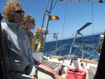 25 juillet 2009, par mi-oursla mer s’apaise un peu, et on file nos huit noeuds grand largue sous tourmentin, un plaisir à gouter à la fin d’un petit coup de vent tenté dans le Golfe du Lion, qui nous a rapproché de Minorque en une nuit blanche et noire.